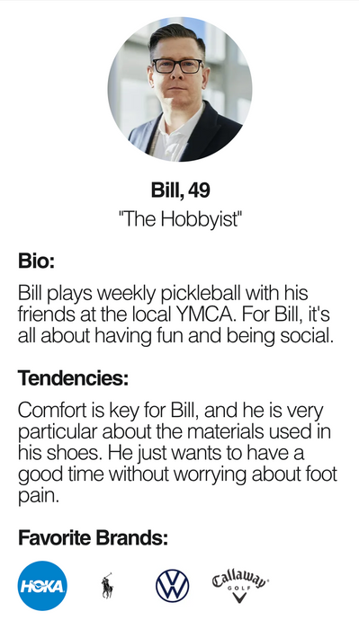 Comfort is key for Bill, and he is very particular about the materials used in his shoes. He just wants to have a good time without worrying about foot pain.